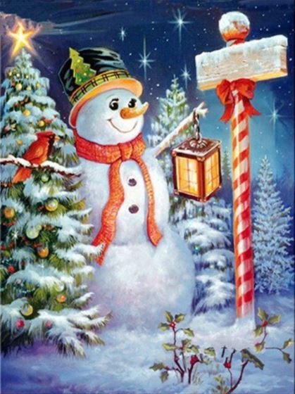Diamantové malování - Sněhulák a ukazatel