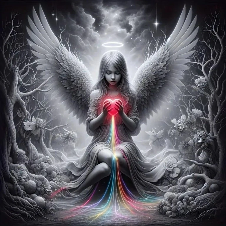 Diamantové malování - Andělská dívka a barevné srdce (50 x 50)