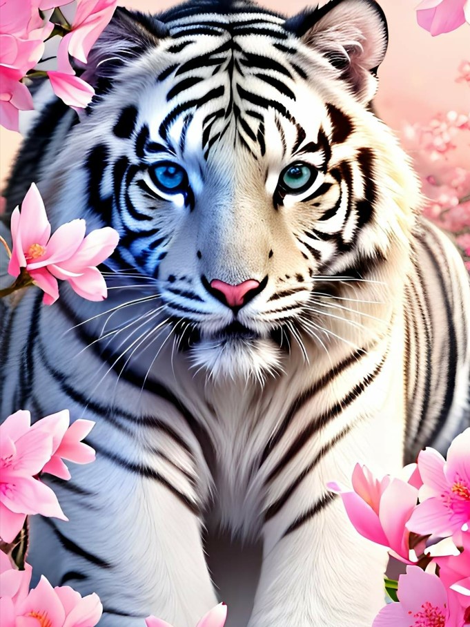 Diamantové malování - Bílý tygřík a růžové květySkladem 2 ks449 Kč/ ks371 Kč bez DPH