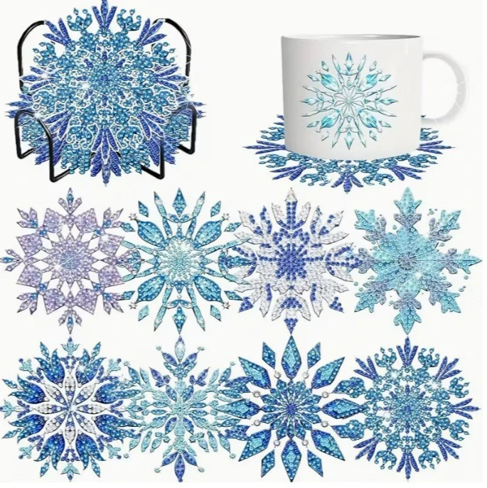 Diamantové malování - Podtácky - Sněhové vločky (8ks)