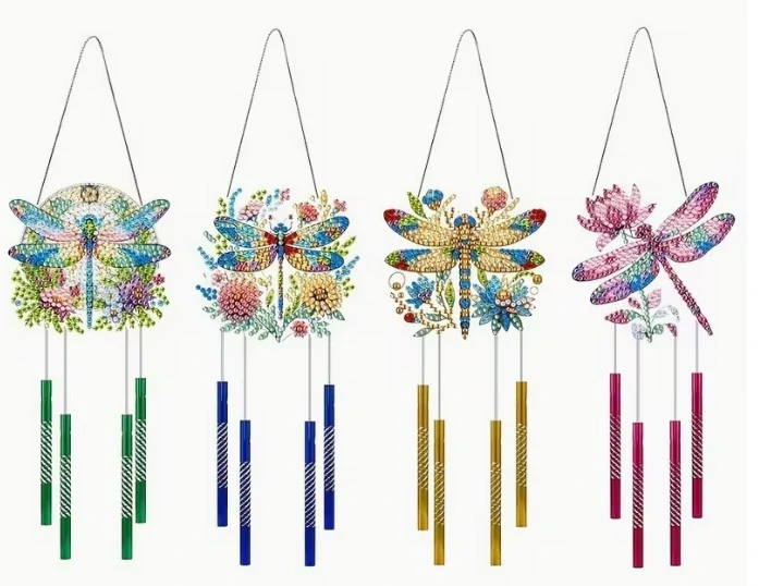 Diamantové malování - Větrná zvonkohra - SET 4ks - Vážky