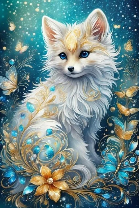 - Diamantové malování/Homfun - Bílá lištička v květinách