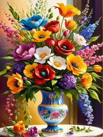 Diamantové malování/Huacan - Barevná kytice ve váze