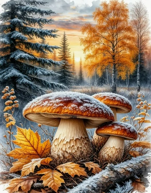 Diamantové malování/Huacan - Zapomenuté hříbky v lese
